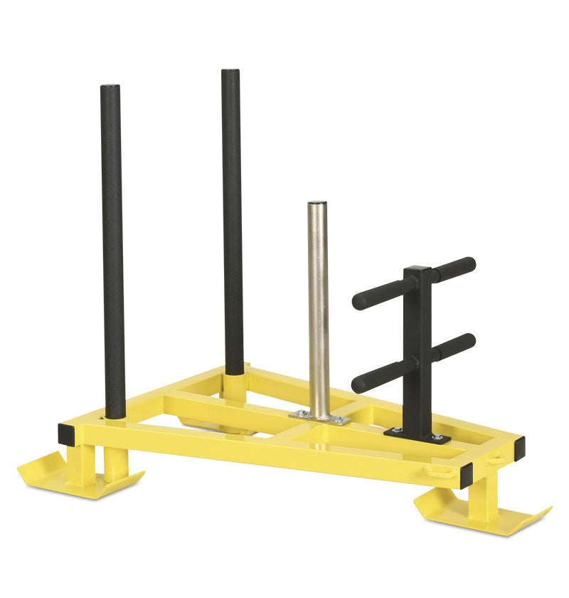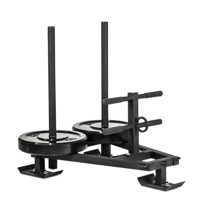 2 post Hercules Heavy Duty Weight Sled Perfect for strength, conditioning, and endurance training. Push, pull, drag, row on most surfaces such as gravel, pavement, concrete, grass, and turf. Compact design with removable handles and posts to allow for easy transportation. Commercial Quality, Made in the USA Made with 3" x 3" sq. tubing 11 gauge steel 7" wide plate (1/4" thick) that are replaceable if you ever wear down the plate. Dimensions: 31" L X 40" W 39" from the floor to top of the posrs. Two posts are removable.