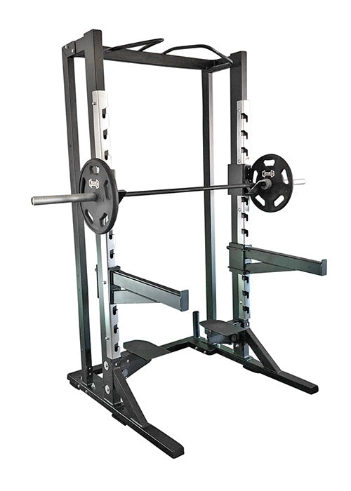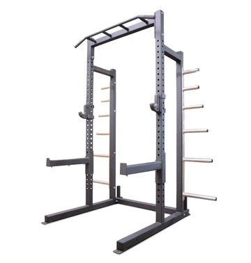 The YORK® Half Rack comes standard with a pull-up bar, bar holders, bench stringer, and more.
