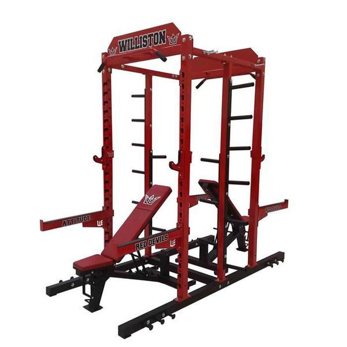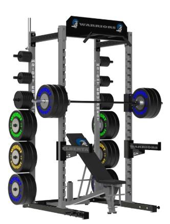| Inside dimensions | Power Rack - 40” between front and rear uprights; 28” diamond plate walk - through / spotting area between Power Rack and Half Rack uprights. |